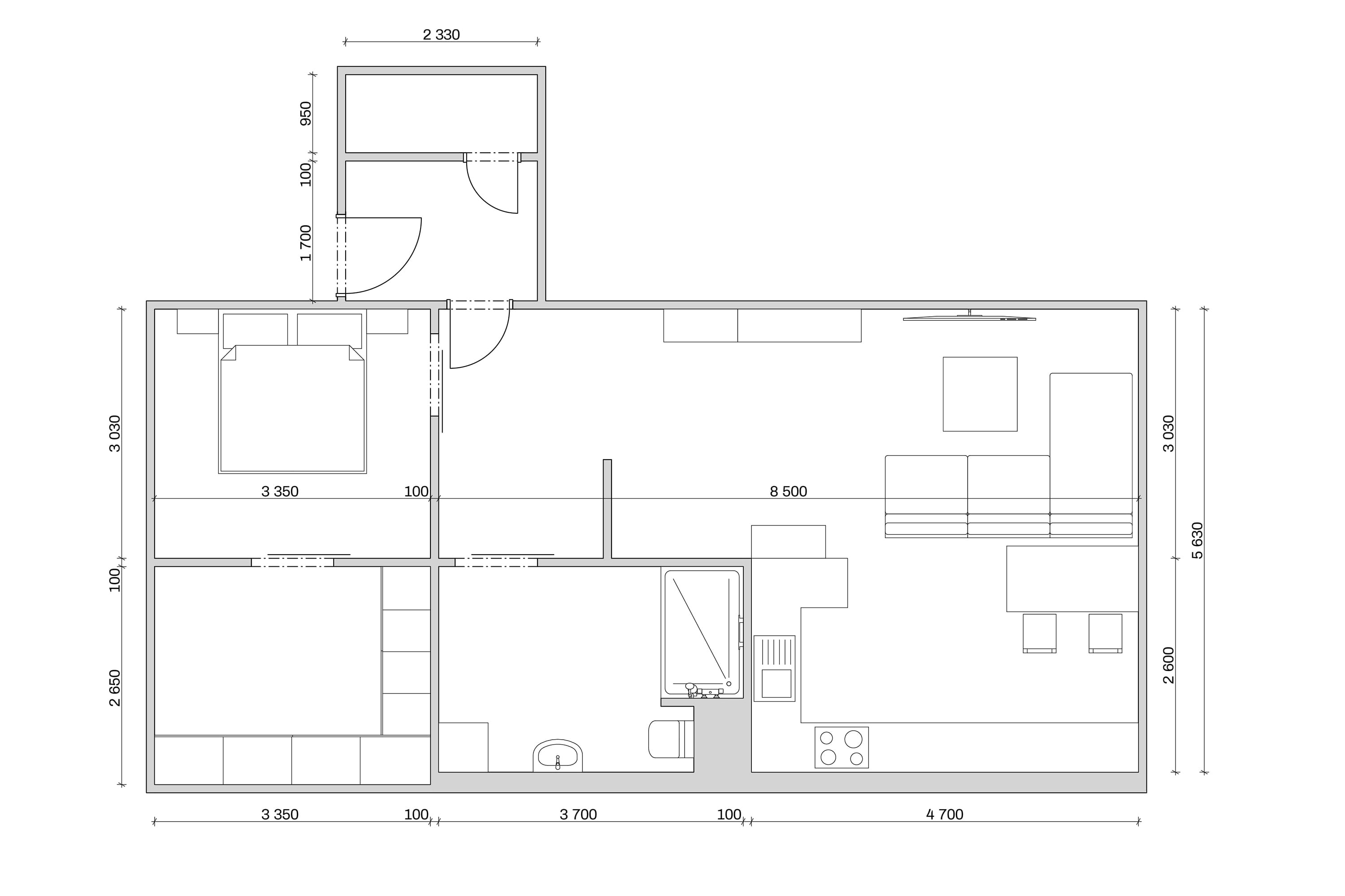 Zobrazuje tvar nemovitosti podle projektové dokumentace a obsahuje detailní informace o jednotlivých místnostech včetně kót a výměr. Pokud není k dispozici projektová dokumentace, tak je možné provést zaměření a zakreslení nemovitosti na místě.